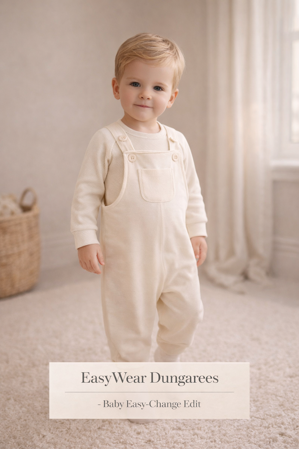Soft baby dungarees with easier opening construction for simpler everyday changes.