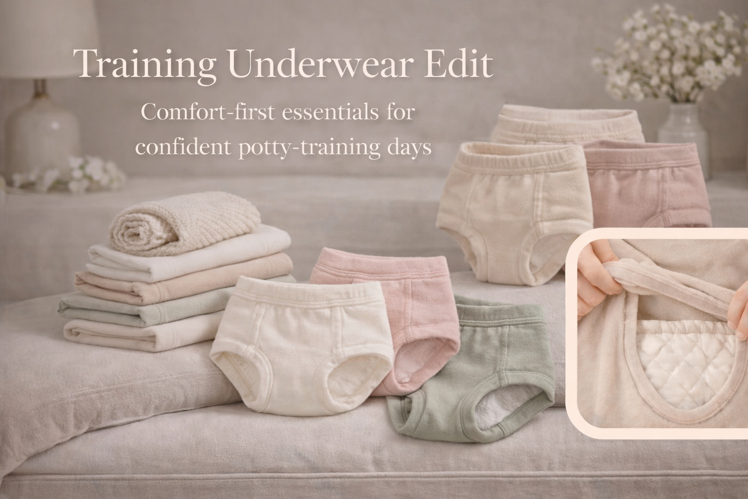 Absorbent training underwear with waterproof outer layer. Slim fit feels like real underwear. Pack of 3 in neutral tones.