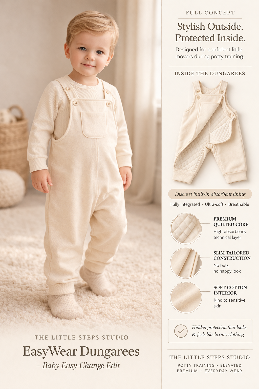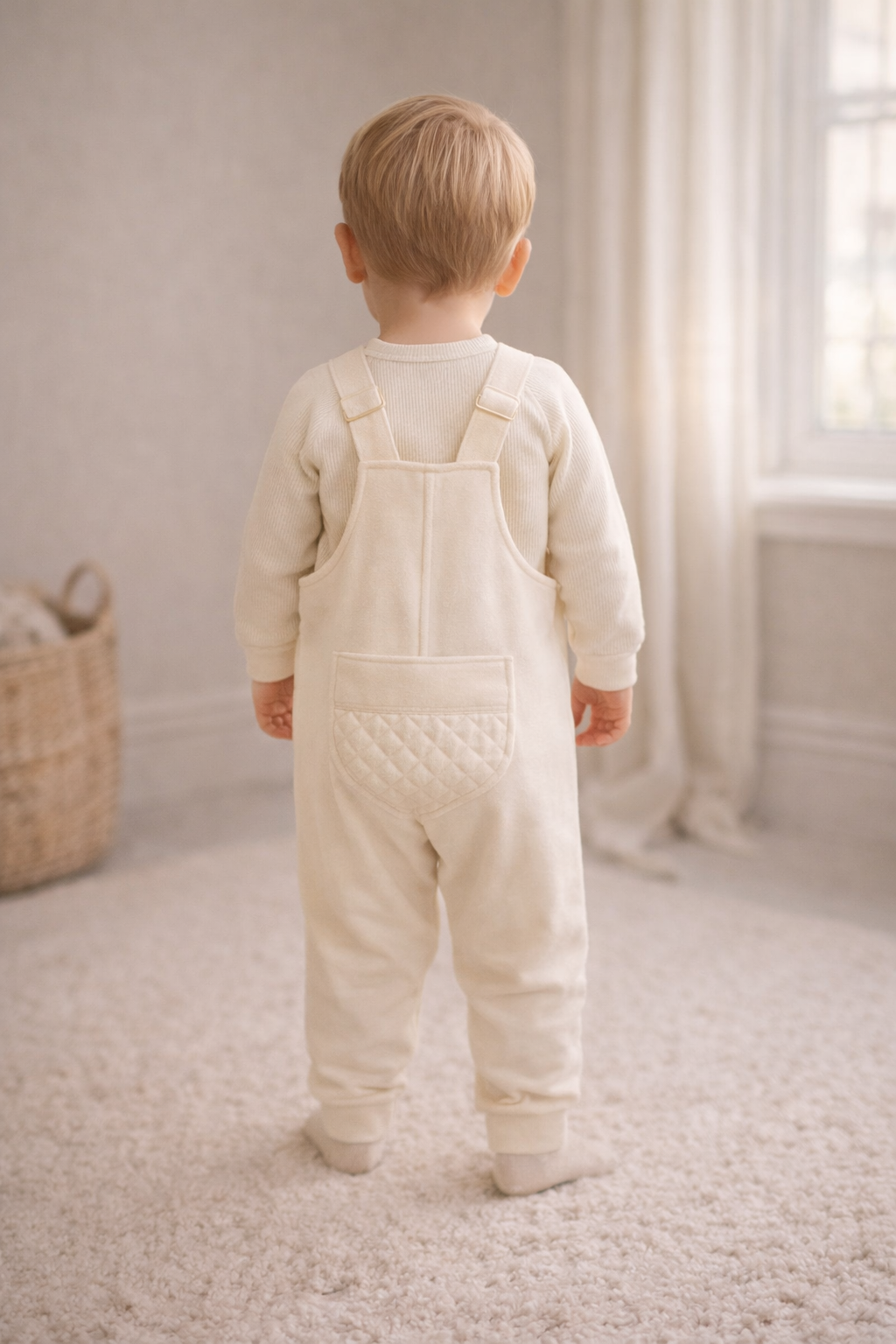 In stockSoft baby dungarees with easier opening construction for simpler everyday changes.